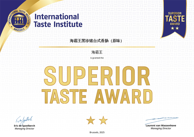 海霸王对证量的苦守也间接表现正在市场表示上。2025年,调研机构尚普征询通过对14家潮汕牛肉丸市场次要品牌调研阐发,向海霸王颁布了“潮汕牛肉丸全国销量第一”市场地位证明书,权势巨子认定其市场领先地位和消费者相信度。这份承认的背后,是海霸王对保守工艺的现代化传承——从精选优良原料到仿“手打”手艺的立异使用,让每一颗牛肉丸都连结地道风味取不变质量。海霸王另一明星产物“黑珍猪台式腊肠”正在比利时布鲁塞尔斩获有“食物界奥斯卡”之称的“国际甘旨章”,质量取甘旨均获得国际食物行业承认。